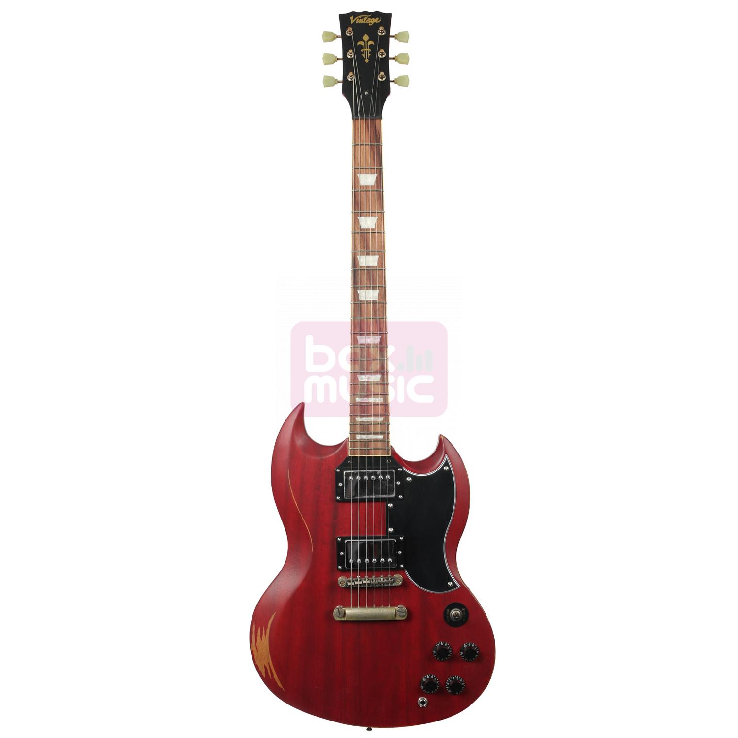 • Vintage Icon VS6MRCR Distressed Cherry Red elektrische gitaar